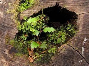 small beech tree emerging from old tree image from Maria Deutsch